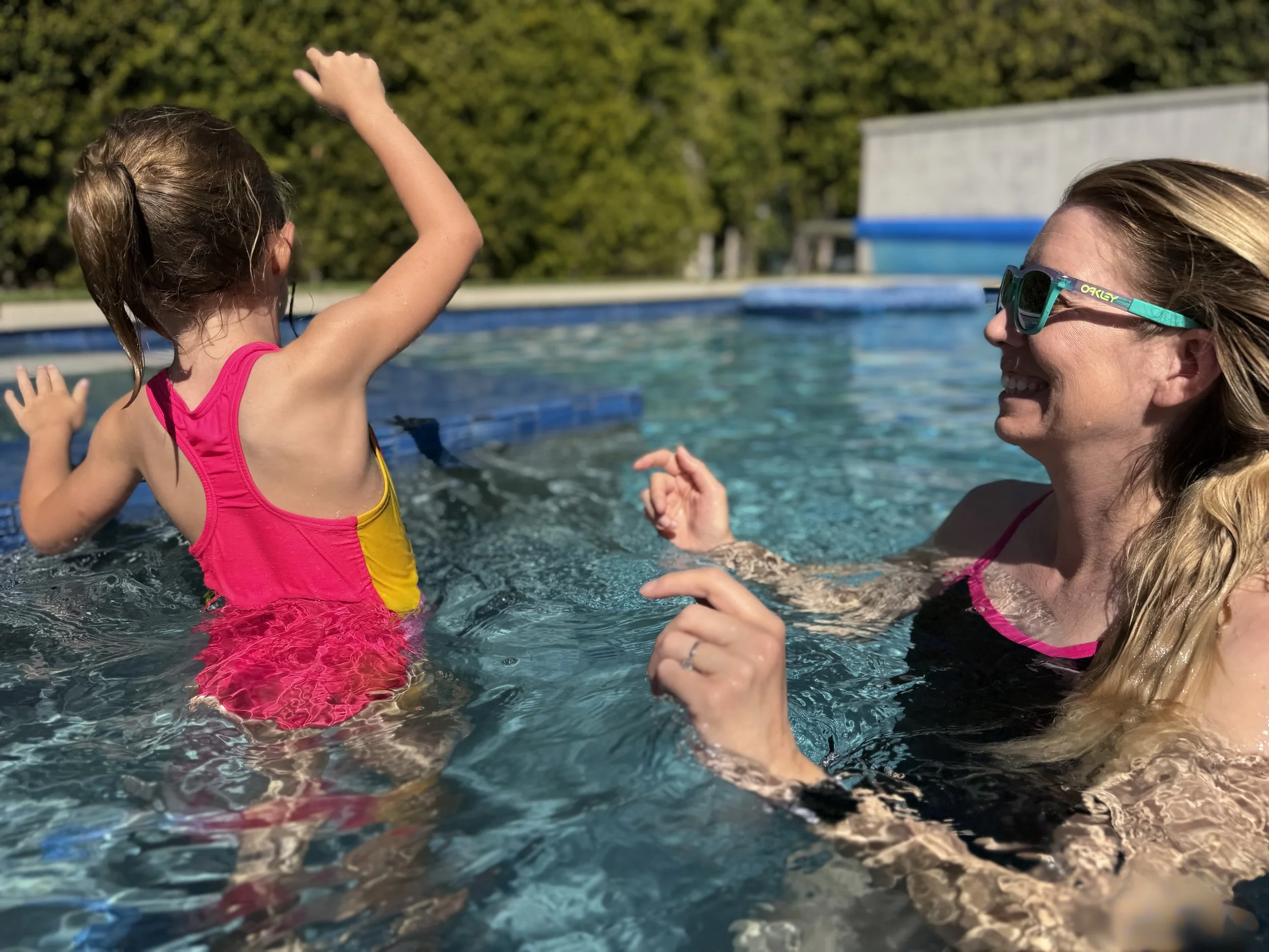 An adult is required to stay on site during swim lessons. There is a shaded lounge area for you to relax while your child swims.